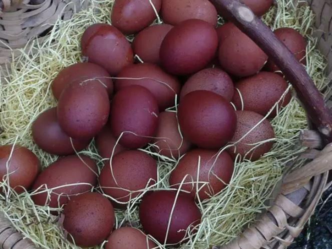 Мясо-яичная порода "Маран". Взрослая курица достигает 2,6-3,2 кг, петух 3,5-4 кг. Цвет скоpлупы яиц — шоколадный. Вес яиц — 50–60 г. Цена за 1 шт.